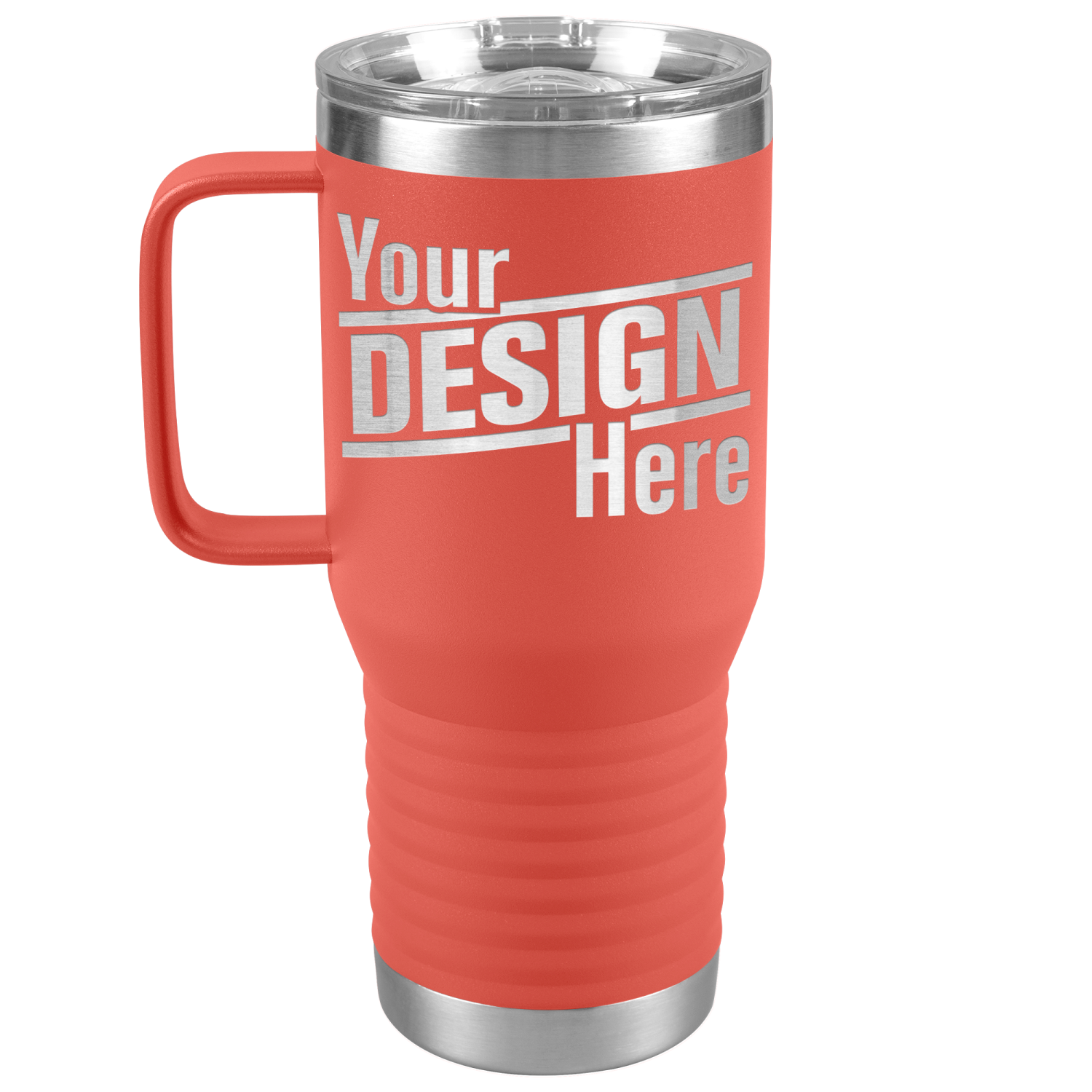 Travel the world or to your living room with your favorite drink in hand. The 20oz Travel Tumbler is constructed out of ultra durable double-wall stainless steel that is vacuum insulated, your drink will remain a consistent temperature 2x longer than your typical glass or plastic containers. Now with a solid handle and slider lid, you no longer have to worry about drops or spills!